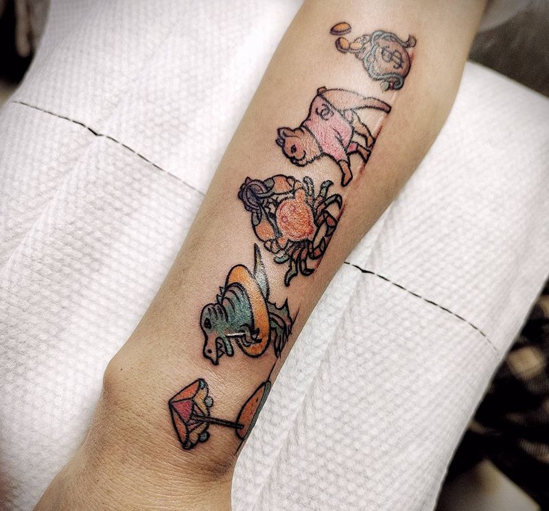 当前位置: 首页 >山西省太原市纹身店-太原翼龙刺青工作室纹身图案>欧美彩色小图纹身图片_手臂老传统纹身图案