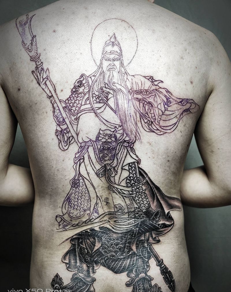 当前位置: 首页 >山西省太原市纹身店-太原翼龙刺青工作室纹身图案>关公盘龙纹身图片_背部新传统纹身图案