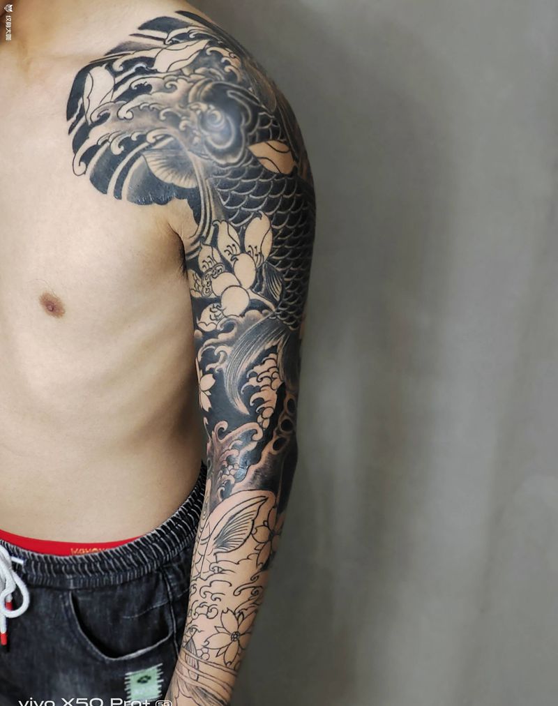 当前位置: 首页 >山西省太原市纹身店-太原翼龙刺青工作室纹身图案>日式老传统花臂纹身图片_手臂老传统纹身图案