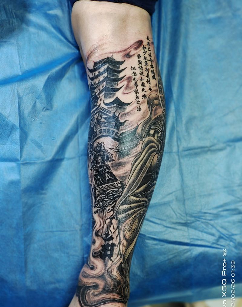 当前位置: 首页 >山西省太原市纹身店-太原翼龙刺青工作室纹身图案>普贤菩萨包小腿纹身图片_腿部新传统纹身图案