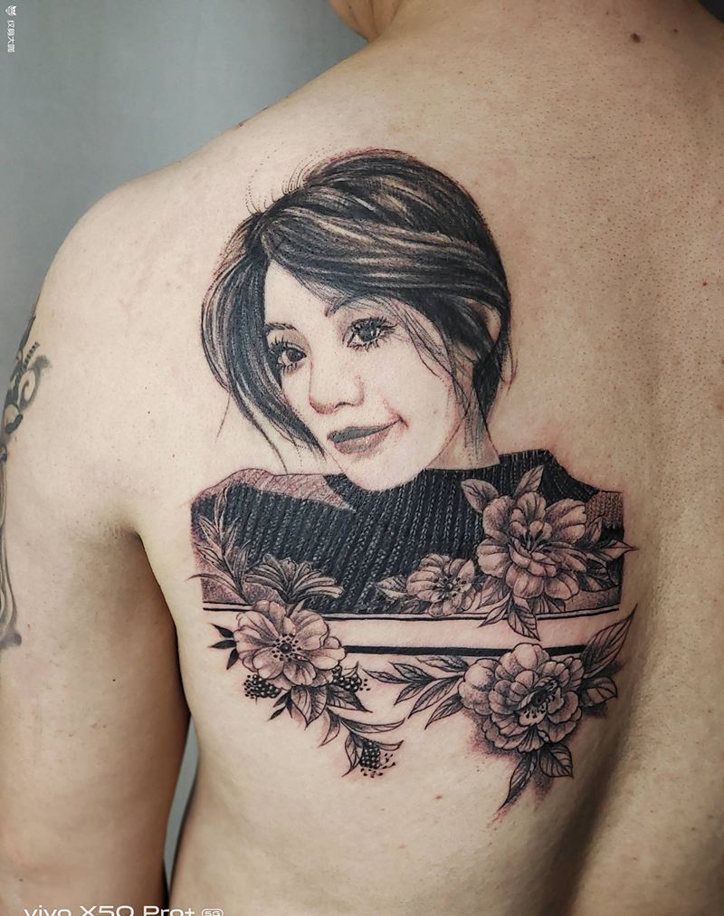 当前位置: 首页 >山西省太原市纹身店-太原翼龙刺青工作室纹身图案>肖像纹身图片_背部新传统纹身图案
