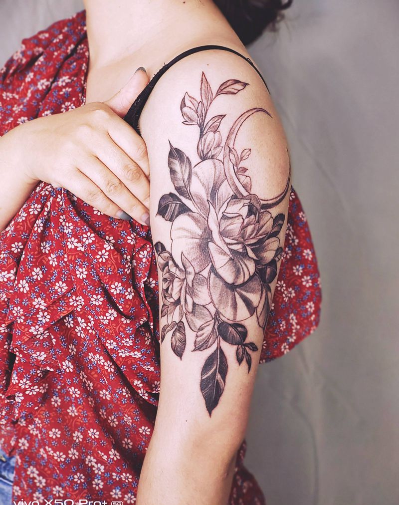 • 女性大花胸纹身_43张霸气漂亮的女性大花胸纹身图案作品
