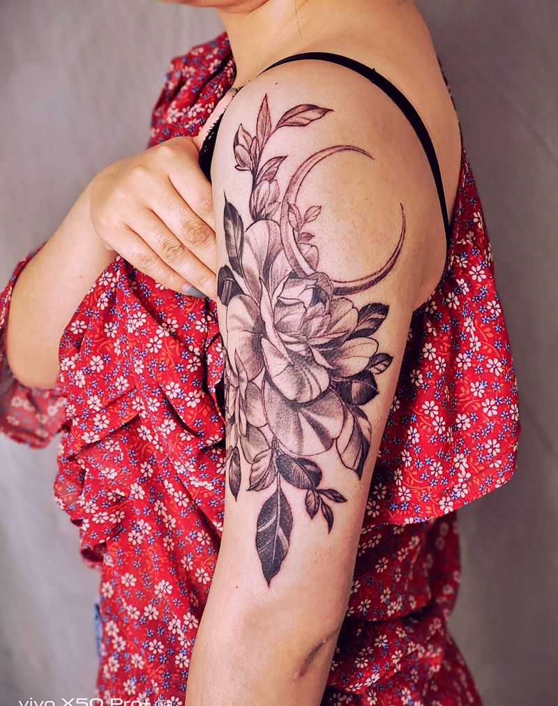• 女性大花胸纹身_43张霸气漂亮的女性大花胸纹身图案作品