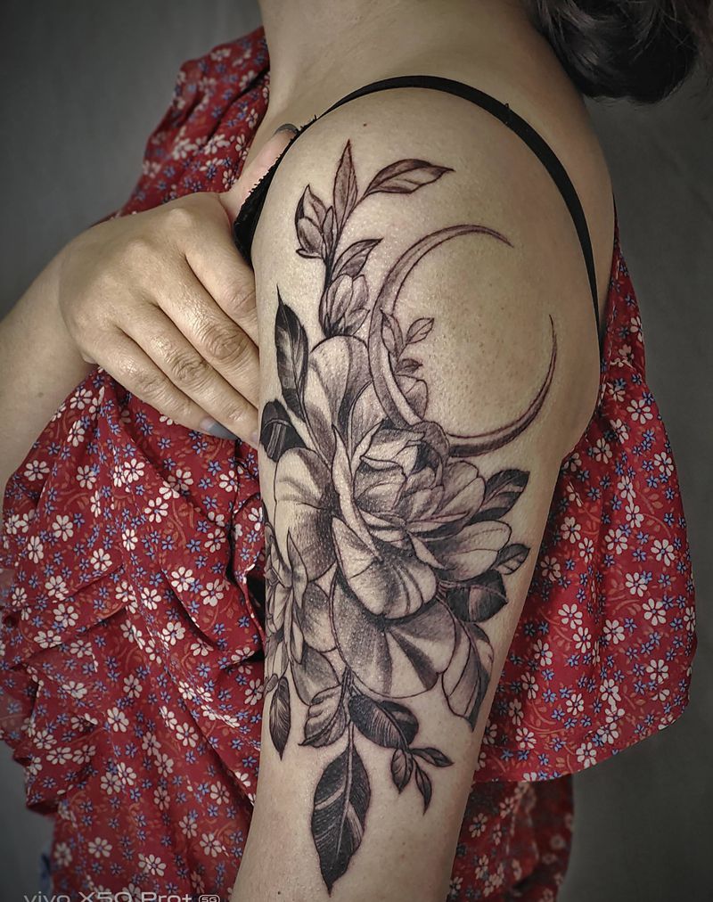 • 女性大花胸纹身_43张霸气漂亮的女性大花胸纹身图案作品