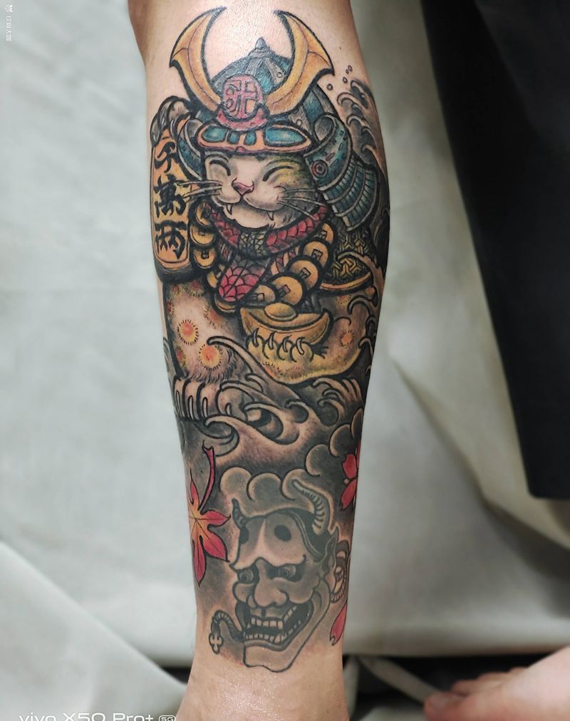 当前位置: 首页 >山西省太原市纹身店-太原翼龙刺青工作室纹身图案>日式老传统招财猫纹身图片_腿部老传统纹身图案