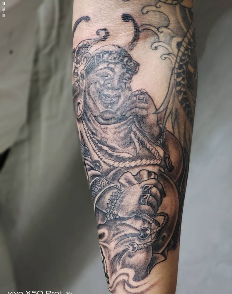 当前位置: 首页 >山西省太原市纹身店-太原翼龙刺青工作室纹身图案>弥勒佛纹身图片_手臂新传统纹身图案