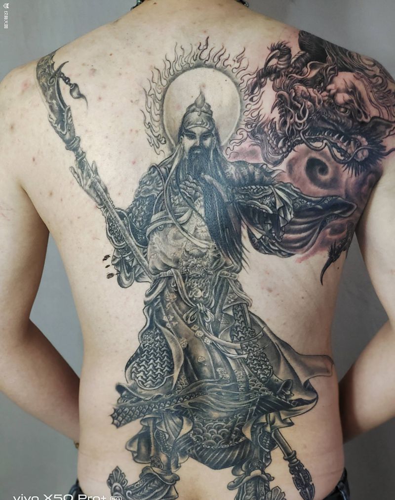 关公盘龙纹身图片_背部新传统纹身图案