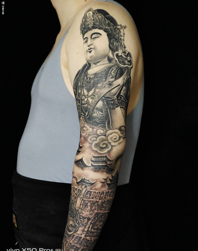 当前位置: 首页 >山西省太原市纹身店-太原翼龙刺青工作室纹身图案>悟空拜佛花臂纹身图片_手臂新传统纹身图案