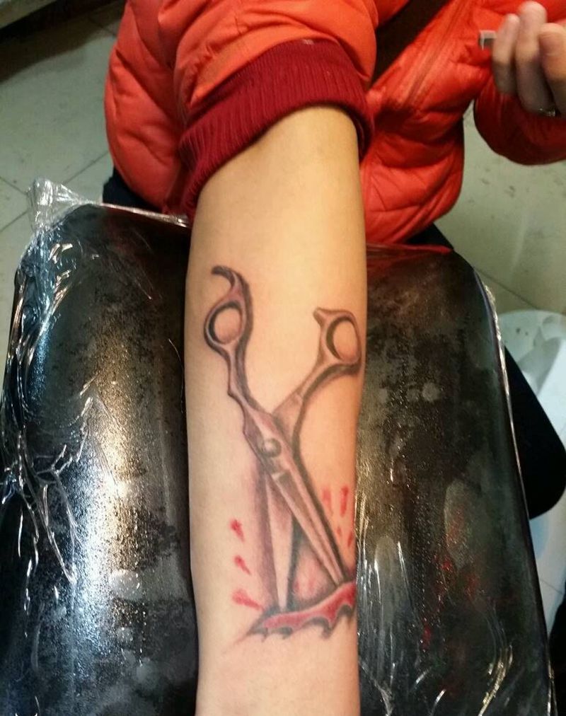 理发剪刀纹身图片_肩部胸部手臂腿部手部写实国画原创纹身图案