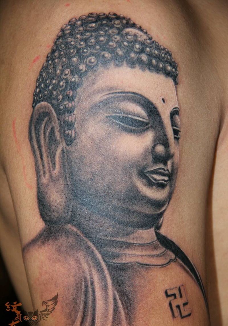 当前位置: 首页 >山西省太原市纹身店-太原翼龙刺青工作室纹身图案>中国如来佛祖纹身图片_肩部手臂手部传统习俗肖像写实国画鬼神纹身图案
