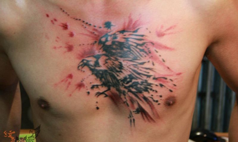泼墨雄鹰纹身图片_胸部背部手臂腿部欧美传统清新国画动物原创纹身图案