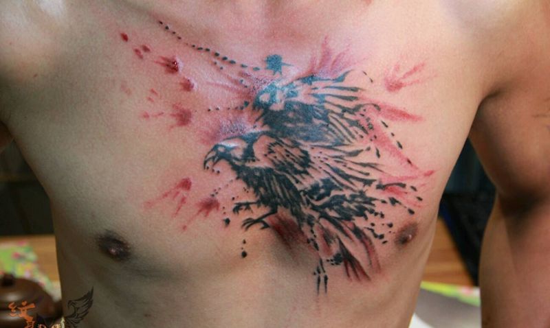 当前位置: 首页 >山西省太原市纹身店-太原翼龙刺青工作室纹身图案>泼墨雄鹰纹身图片_胸部背部手臂腿部欧美传统清新国画动物原创纹身图案