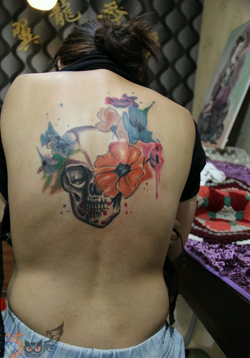 当前位置: 首页 >山西省太原市纹身店-太原翼龙刺青工作室纹身图案>泼墨骷髅纹身图片_肩部背部臀部腿部欧美肖像清新国画人物鬼神纹身图案