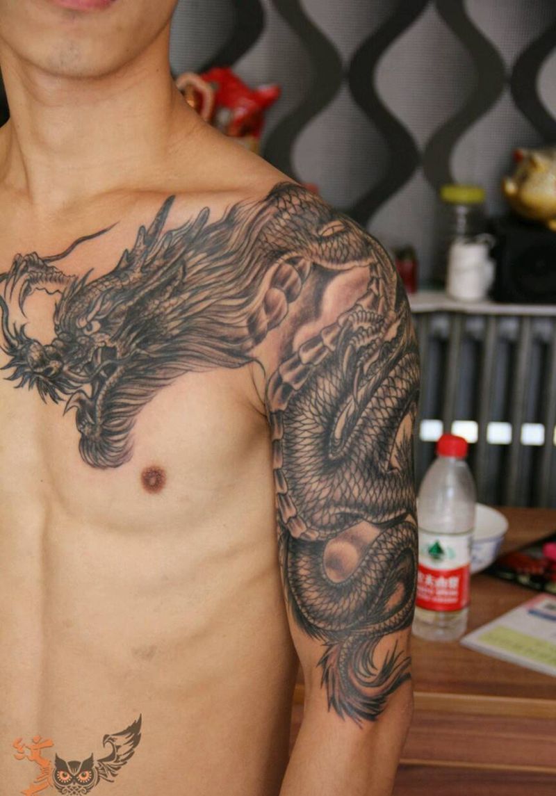 过肩龙纹身图片_肩部胸部手臂传统动物鬼神纹身图案