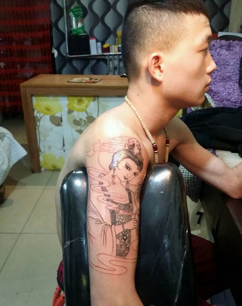 当前位置: 首页 >山西省太原市纹身店-太原翼龙刺青工作室纹身图案>葡萄美酒夜光杯纹身图片_肩部背部手臂腿部传统人物成品纹身图案