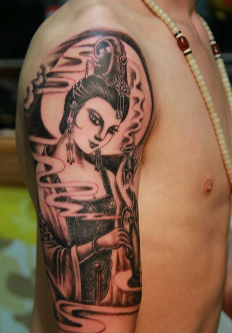 当前位置: 首页 >山西省太原市纹身店-太原翼龙刺青工作室纹身图案>葡萄美酒夜光杯纹身图片_肩部背部手臂腿部传统人物成品纹身图案