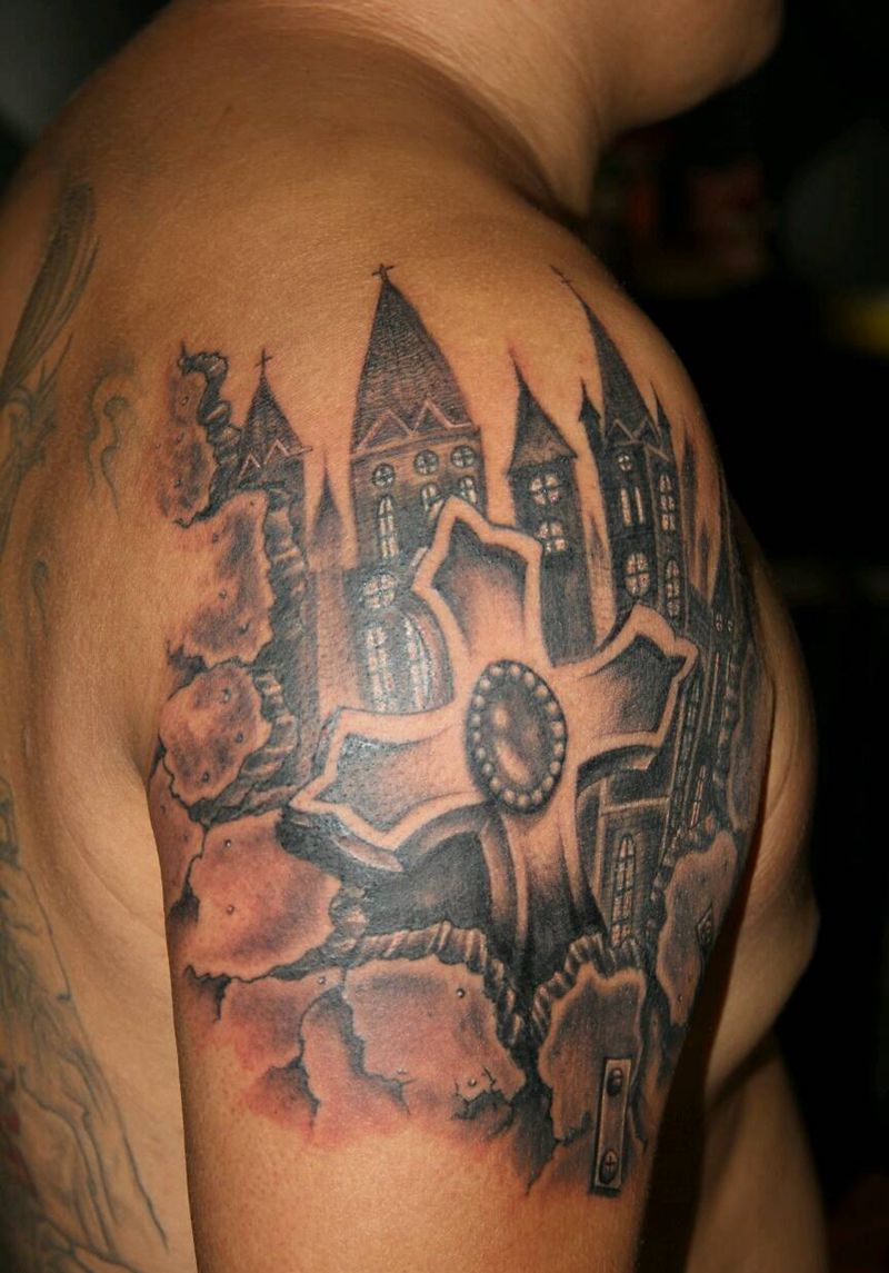 当前位置: 首页 >山西省太原市纹身店-太原翼龙刺青工作室纹身图案>圣诞之夜纹身图片_肩部背部手臂手部欧美传统静物鬼神宗教原创纹身图案