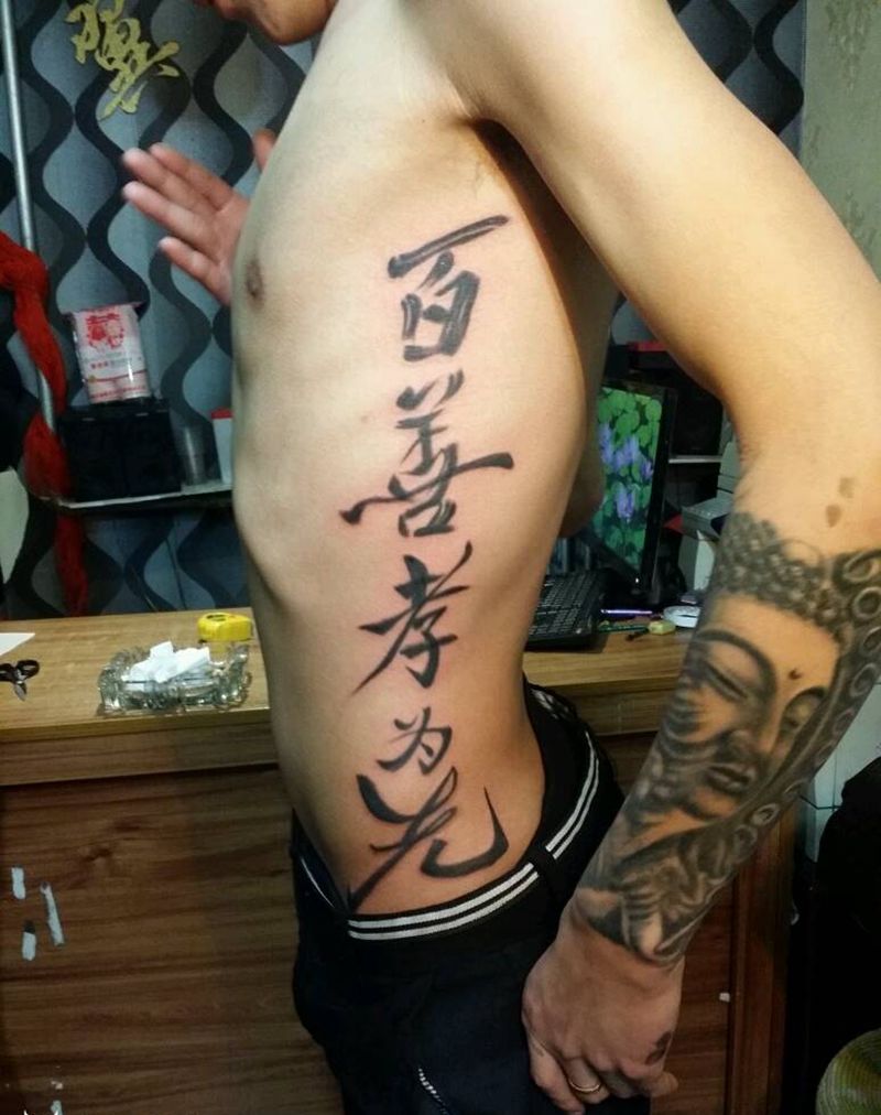 百善孝为先纹身图片_腰部传统清新字符成品纹身图案