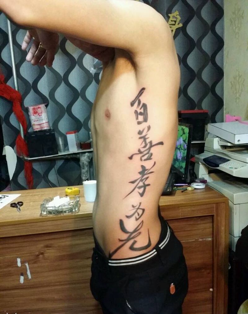 百善孝为先纹身图片_腰部传统清新字符成品纹身图案