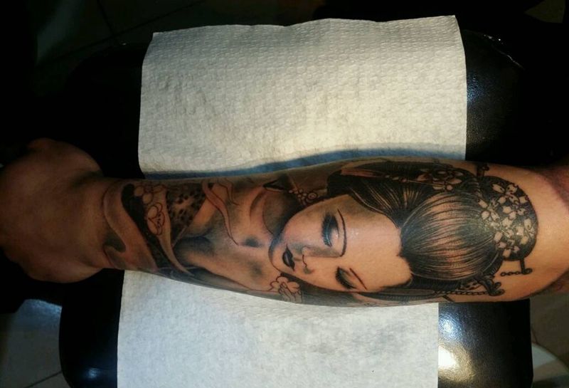 当前位置: 首页 >山西省太原市纹身店-太原翼龙刺青工作室纹身图案>歌舞伎花臂未完成纹身图片_肩部手臂手部欧美传统习俗动物人物鬼神纹身图案