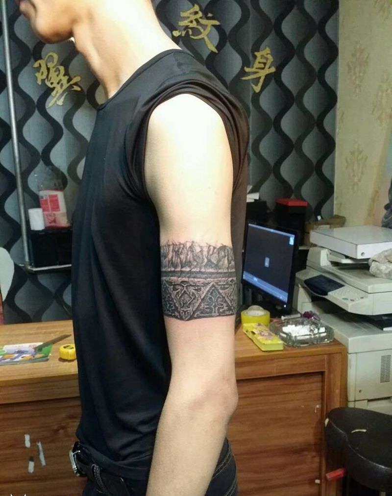 当前位置: 首页 >山西省太原市纹身店-太原翼龙刺青工作室纹身图案>石裂臂环纹身图片_肩部腰部背部手臂腿部手部几何图腾原创成品纹身图案