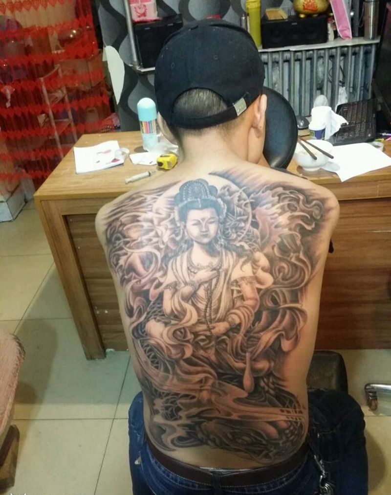 当前位置: 首页 >山西省太原市纹身店-太原翼龙刺青工作室纹身图案>观音骑鱼纹身图片_背部传统习俗写实国画人物鬼神成品纹身图案