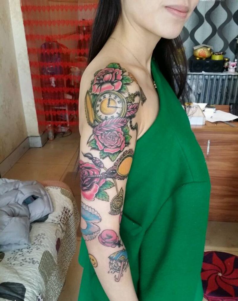 拼图花臂纹身图片