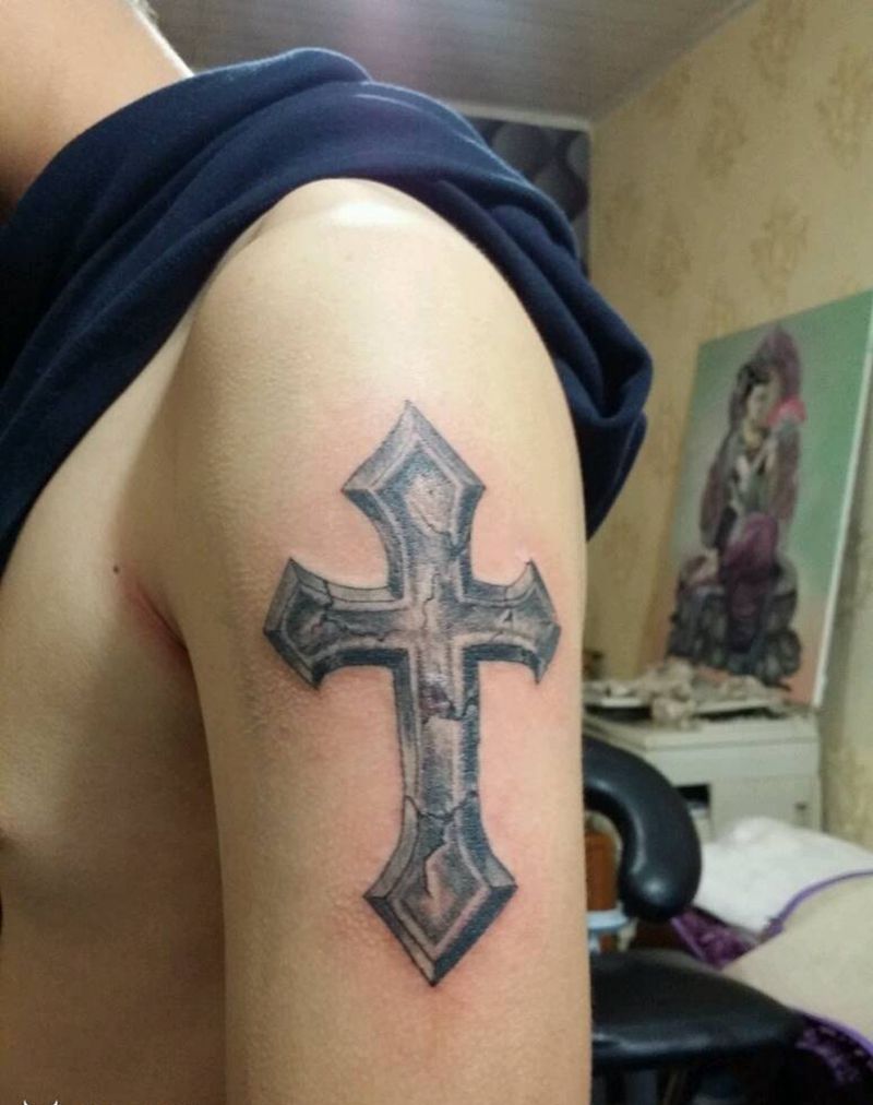 十字架纹身图片_肩部腰部手臂欧美几何宗教原创成品纹身图案