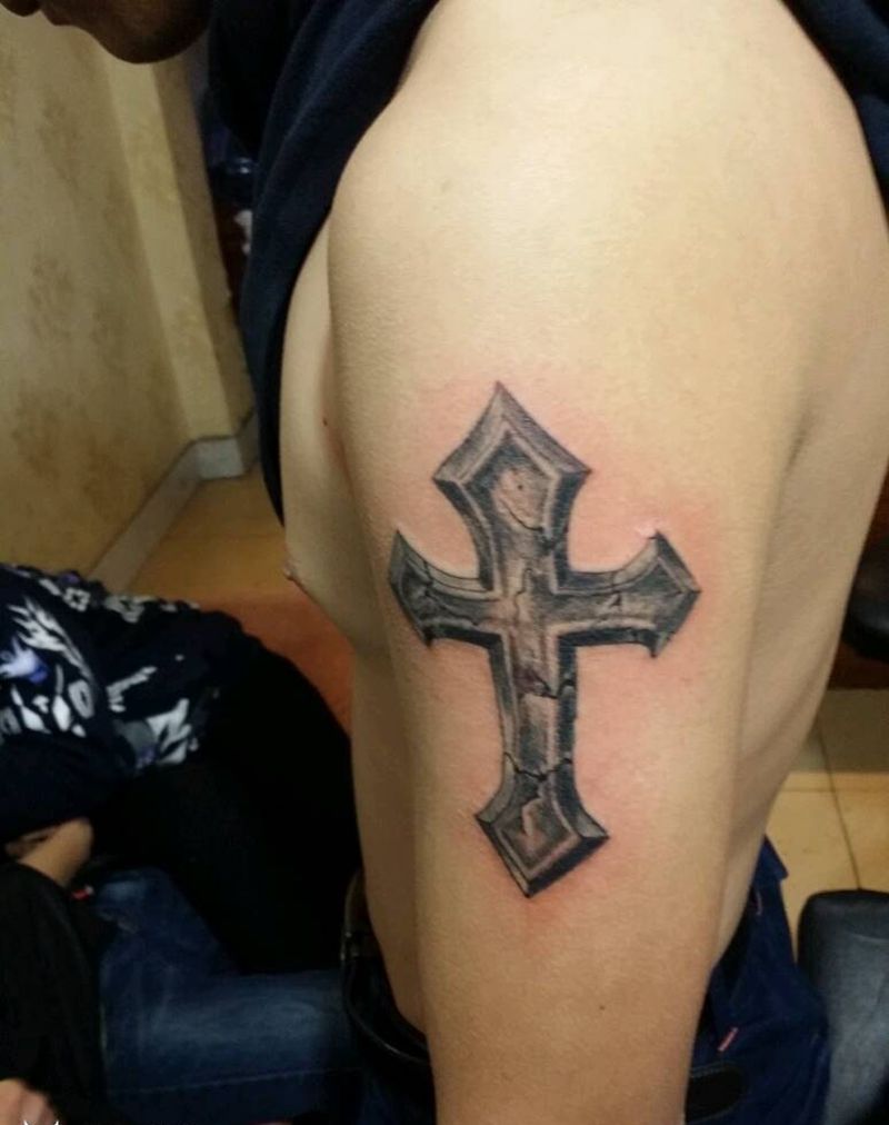 当前位置: 首页 >山西省太原市纹身店-太原翼龙刺青工作室纹身图案>十字架纹身图片_肩部腰部手臂欧美几何宗教原创成品纹身图案
