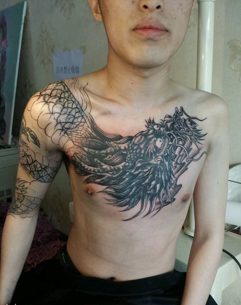 当前位置: 首页 >山西省太原市纹身店-太原翼龙刺青工作室纹身图案>爆改过肩龙纹身图片_肩部胸部手臂传统原创成品纹身图案