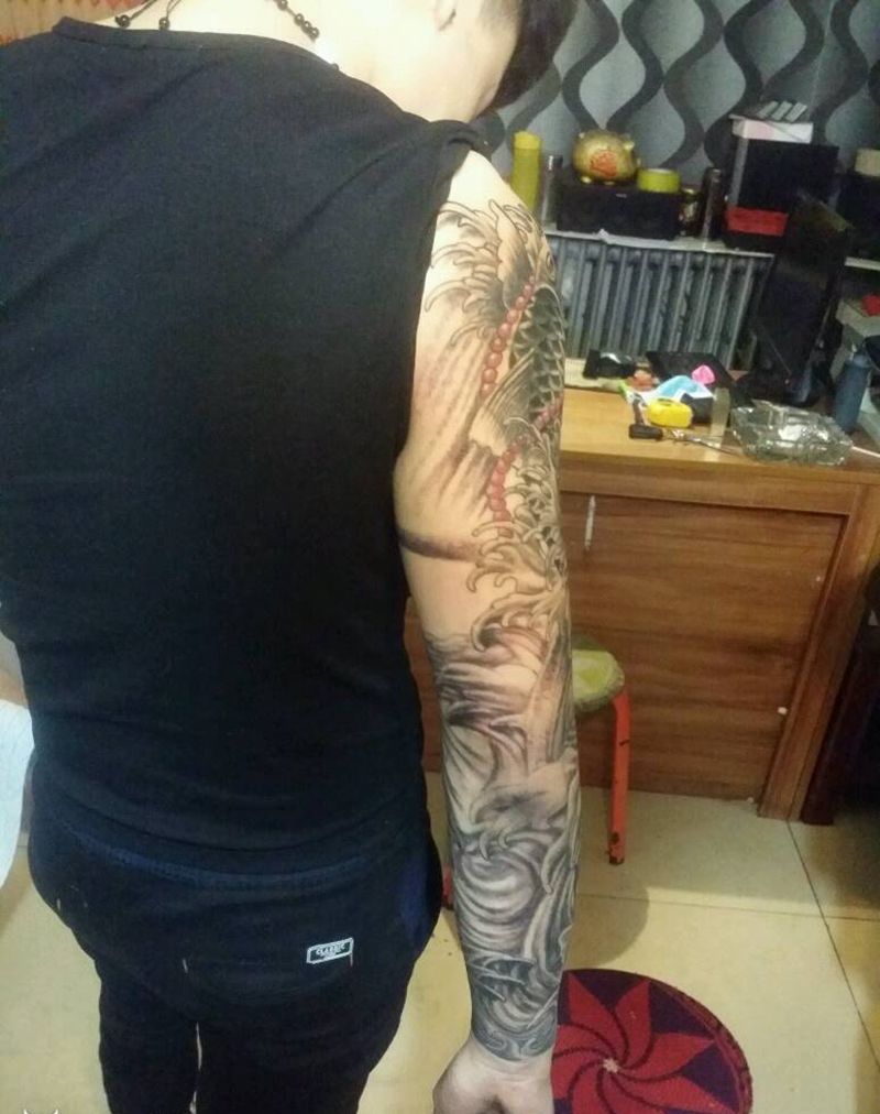 当前位置: 首页 >山西省太原市纹身店-太原翼龙刺青工作室纹身图案>遮盖花臂纹身图片_肩部手臂手部动物成品纹身图案