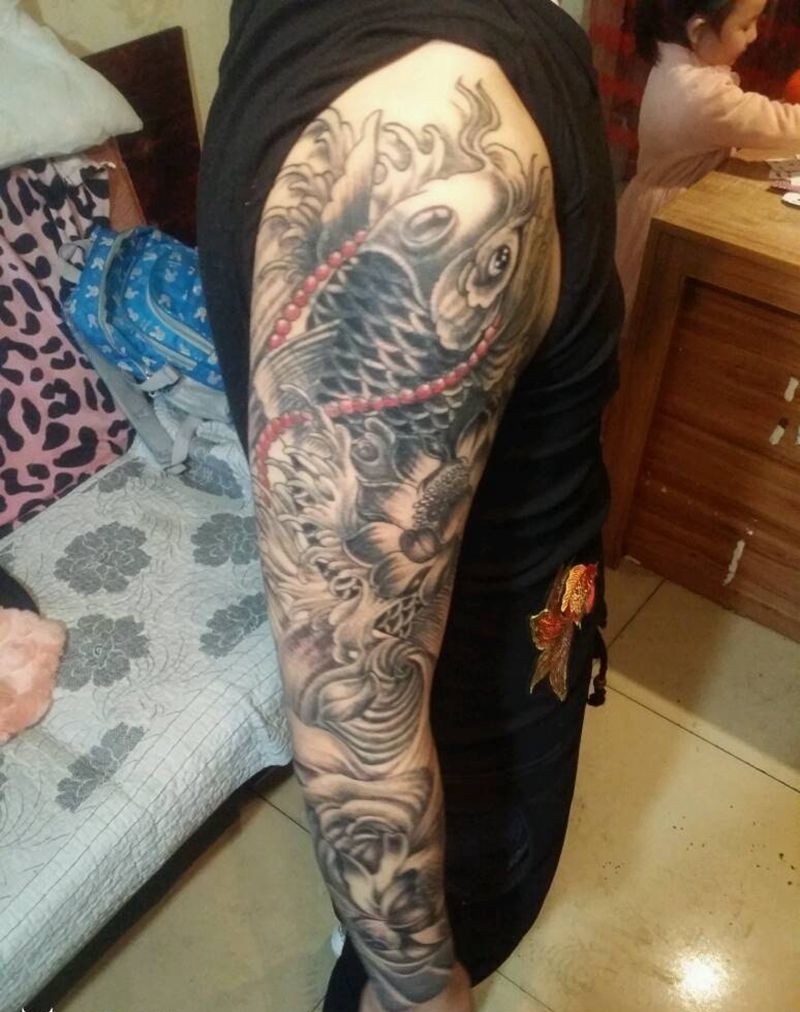 遮盖花臂纹身图片_肩部手臂手部动物成品纹身图案