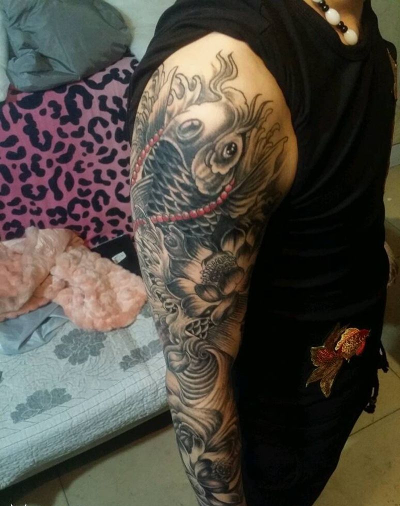 遮盖花臂纹身图片_肩部手臂手部动物成品纹身图案