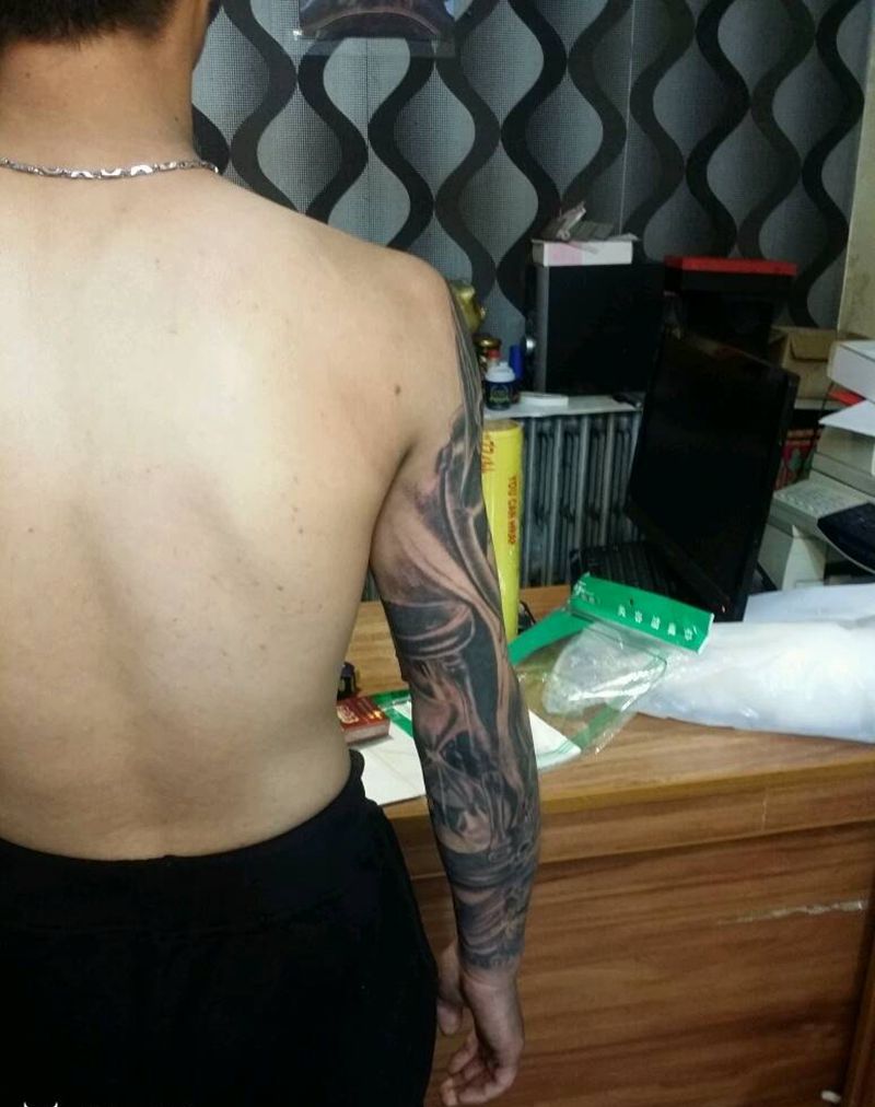 当前位置: 首页 >山西省太原市纹身店-太原翼龙刺青工作室纹身图案>死神来了1花臂纹身图片_肩部手臂手部欧美鬼神成品纹身图案
