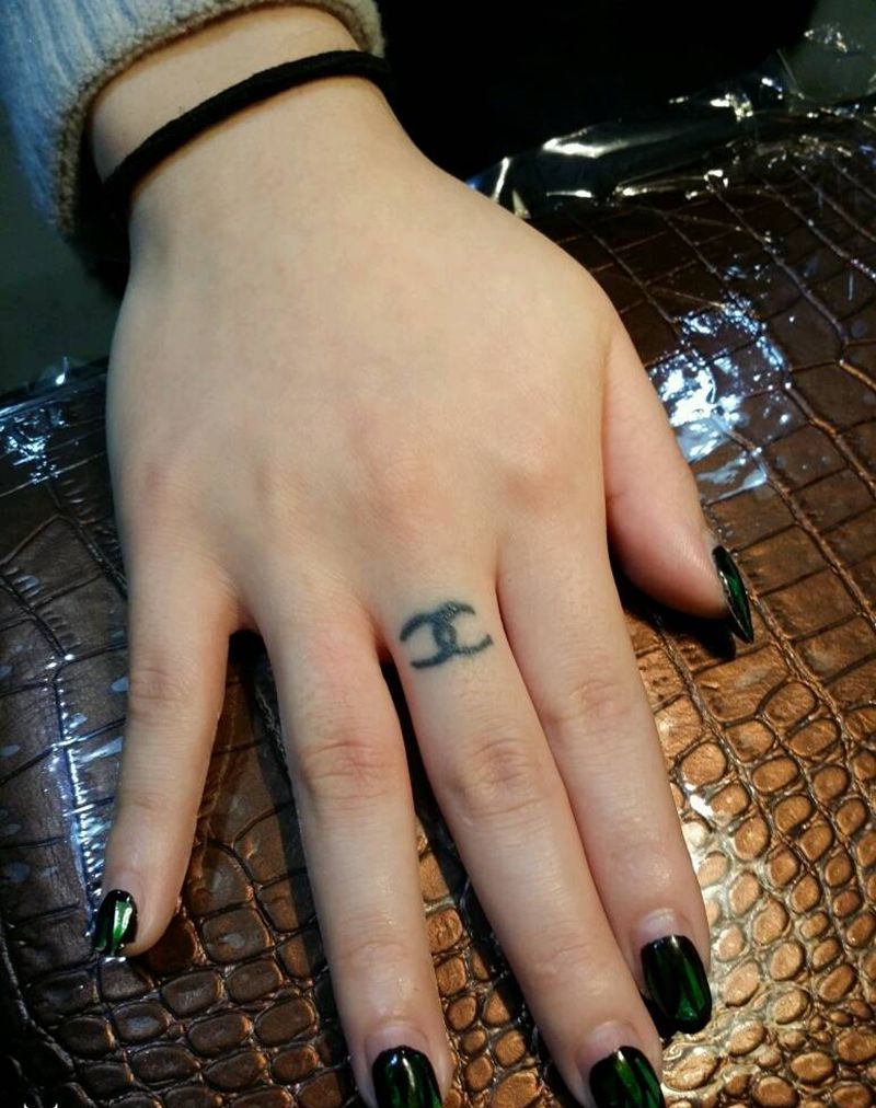 当前位置: 首页 >山西省太原市纹身店-太原翼龙刺青工作室纹身图案>修改香奈儿纹身图片_肩部手臂手部脚部传统清新几何情侣原创成品纹身图案