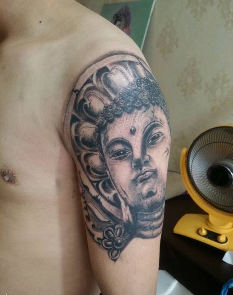 当前位置: 首页 >山西省太原市纹身店-太原翼龙刺青工作室纹身图案>石佛纹身图片_肩部胸部背部手臂手部传统习俗鬼神宗教成品纹身图案