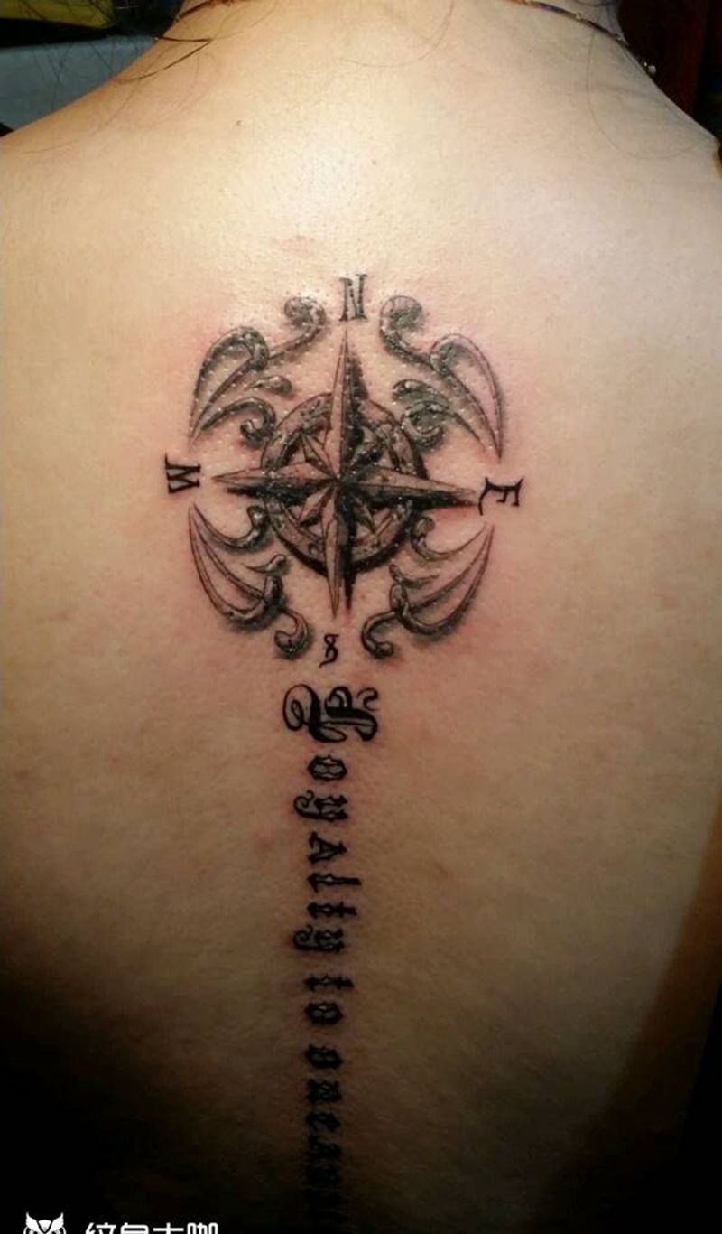 石雕指南针纹身图片_肩部胸部背部手臂腿部几何字符静物原创成品纹身图案