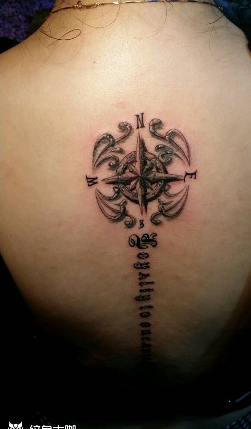 石雕指南针纹身图片_肩部胸部背部手臂腿部几何字符静物原创成品纹身图案
