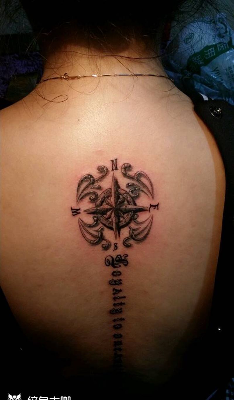石雕指南针纹身图片_肩部胸部背部手臂腿部几何字符静物原创成品纹身图案