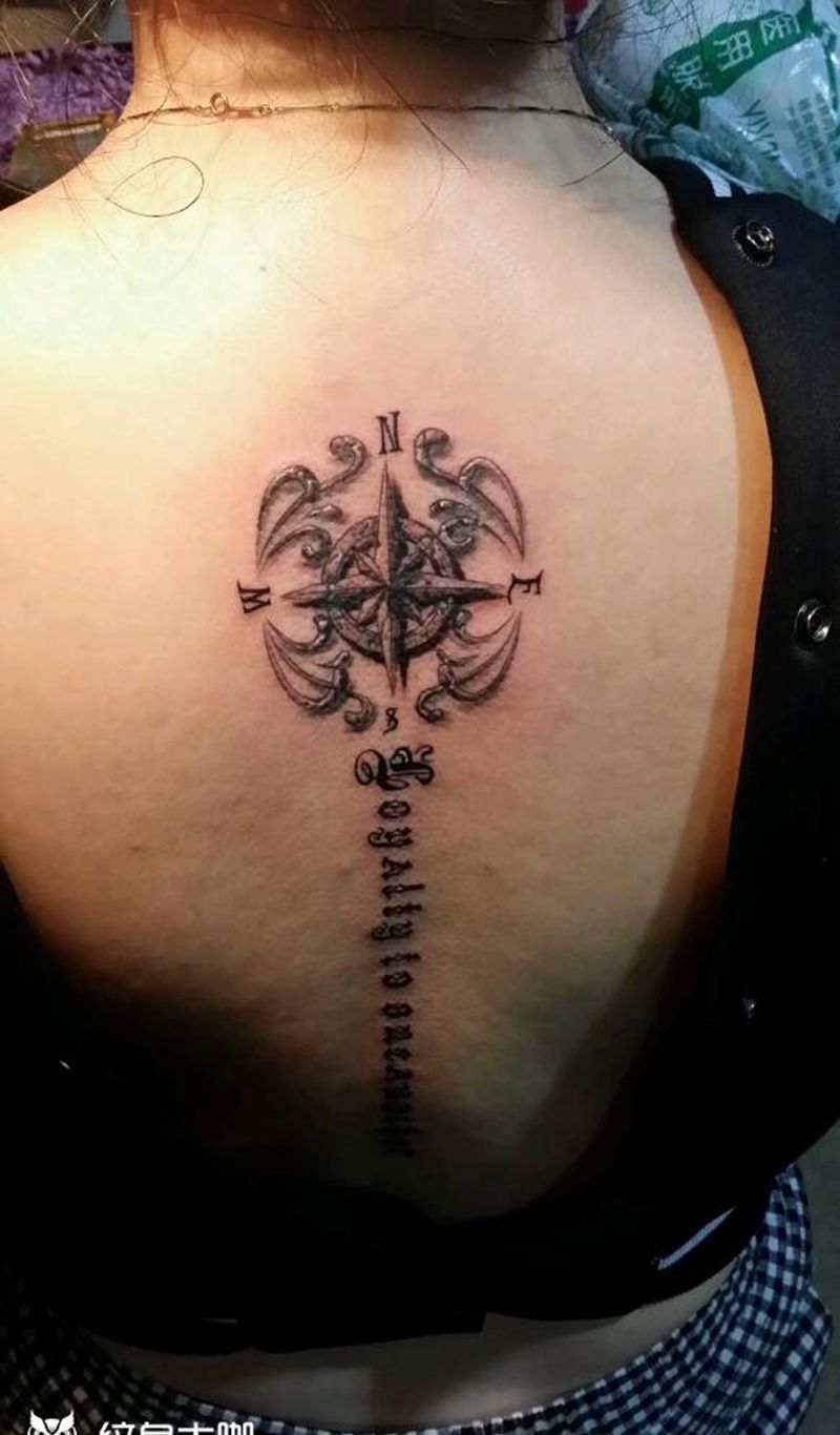 石雕指南针纹身图片_肩部胸部背部手臂腿部几何字符静物原创成品纹身图案