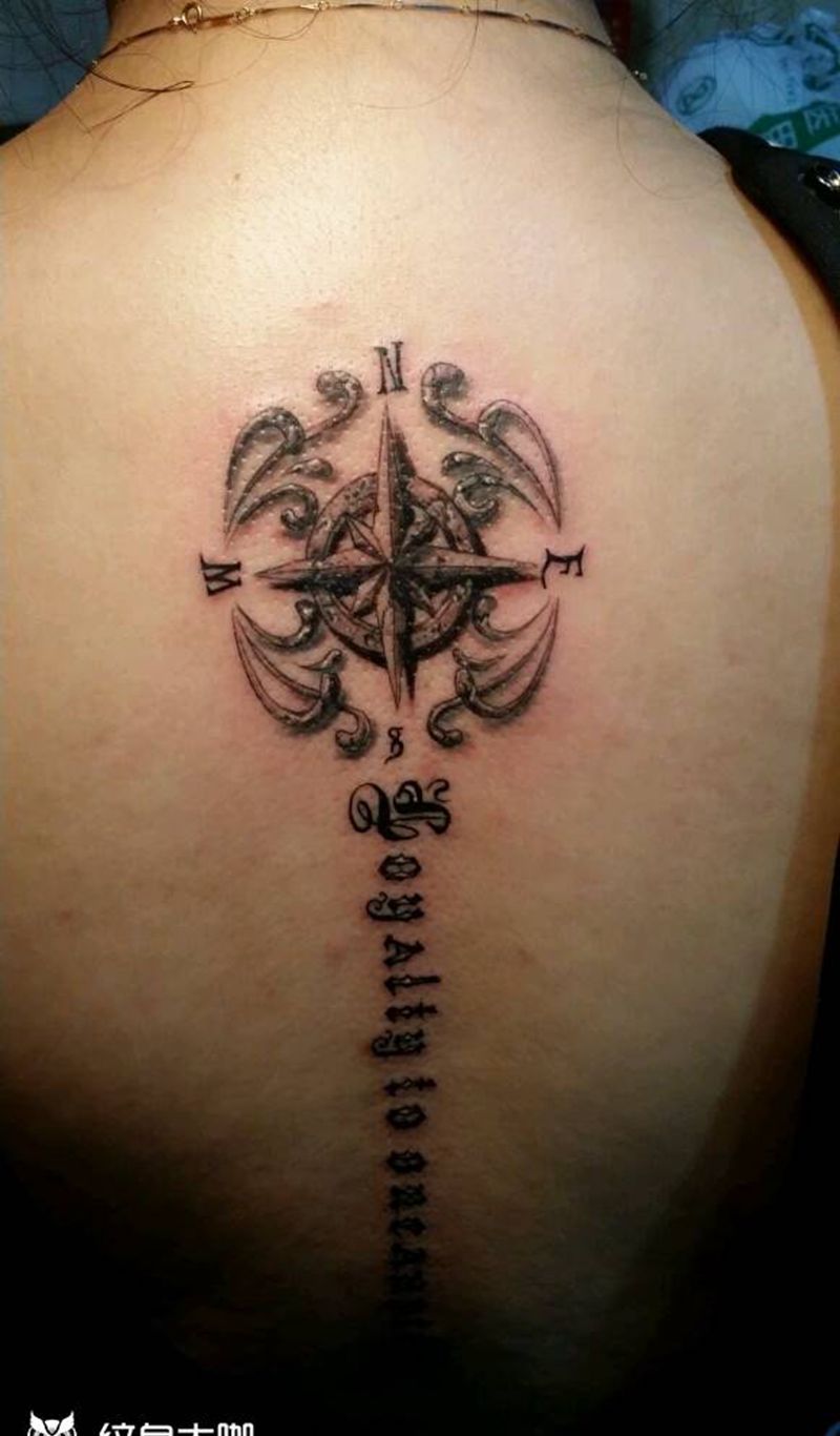 石雕指南针纹身图片_肩部胸部背部手臂腿部几何字符静物原创成品纹身图案