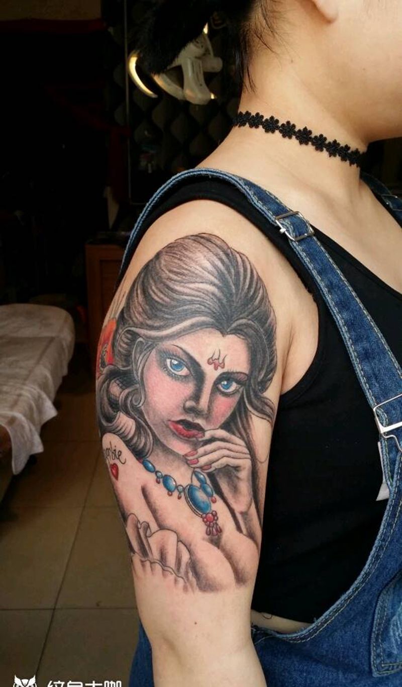 蓝色妖姬纹身图片_肩部胸部背部手臂腿部手部欧美肖像人物成品纹身图案