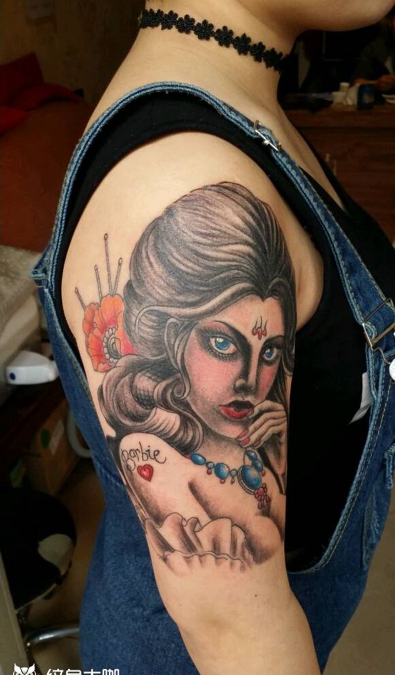 蓝色妖姬纹身图片_肩部胸部背部手臂腿部手部欧美肖像人物成品纹身图案