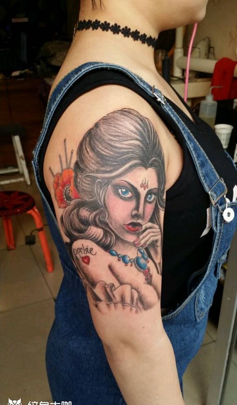 蓝色妖姬纹身图片_肩部胸部背部手臂腿部手部欧美肖像人物成品纹身图案