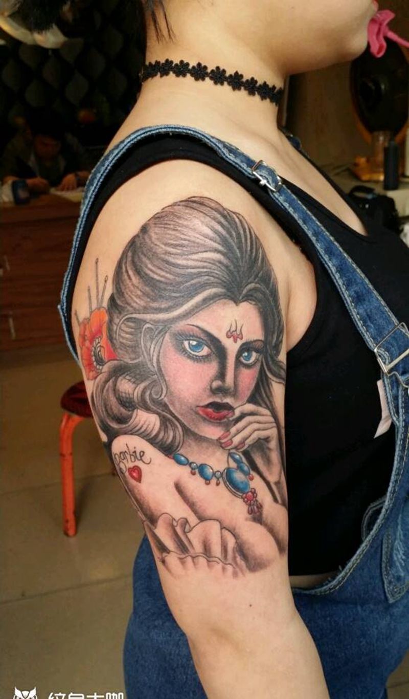 蓝色妖姬纹身图片_肩部胸部背部手臂腿部手部欧美肖像人物成品纹身图案