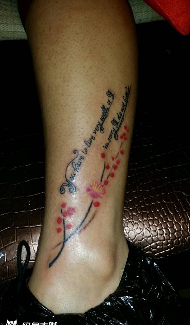 当前位置: 首页 >山西省太原市纹身店-太原翼龙刺青工作室纹身图案>一枝梅纹身图片_腿部原创成品纹身图案