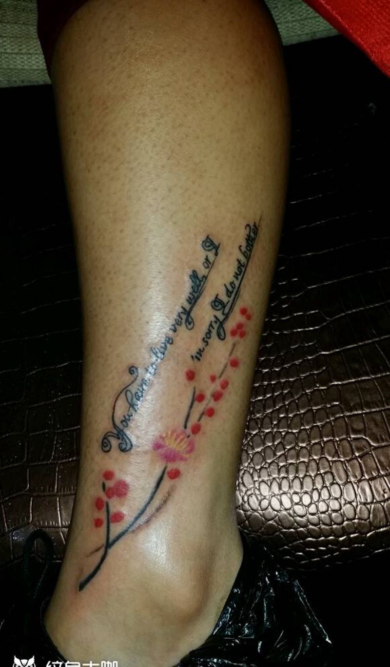 当前位置: 首页 >山西省太原市纹身店-太原翼龙刺青工作室纹身图案>一枝梅纹身图片_腿部原创成品纹身图案