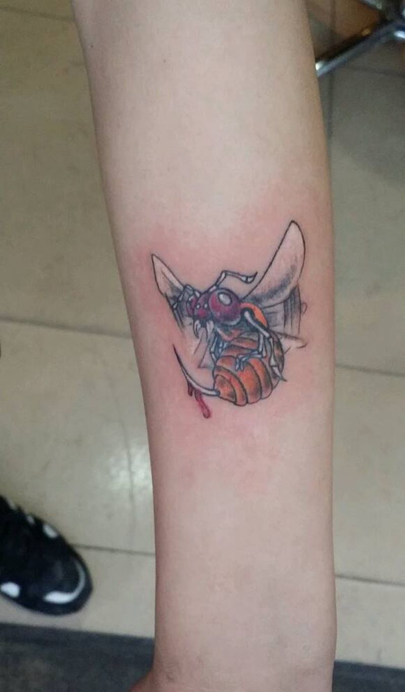 当前位置: 首页 >山西省太原市纹身店-太原翼龙刺青工作室纹身图案>一只小蜜蜂纹身图片_颈部肩部胸部腹部腰部背部臀部手臂手部成品纹身图案