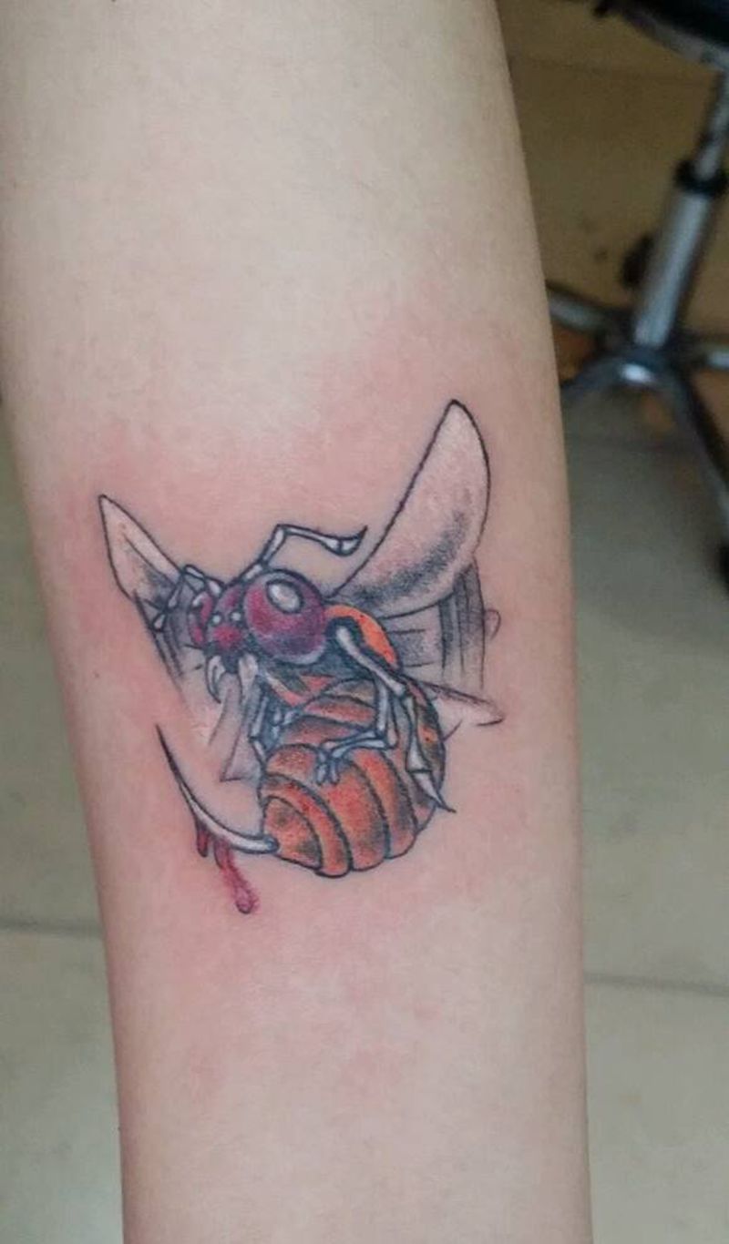 当前位置: 首页 >山西省太原市纹身店-太原翼龙刺青工作室纹身图案>一只小蜜蜂纹身图片_颈部肩部胸部腹部腰部背部臀部手臂手部成品纹身图案