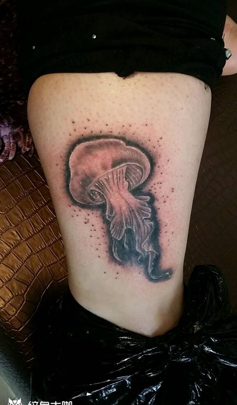 当前位置: 首页 >山西省太原市纹身店-太原翼龙刺青工作室纹身图案>水母纹身图片_肩部胸部背部手臂腿部脚部动物成品纹身图案